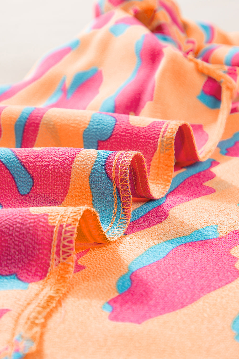 Orange Abstract Print V Neck Ruffled Sleeve Blouse