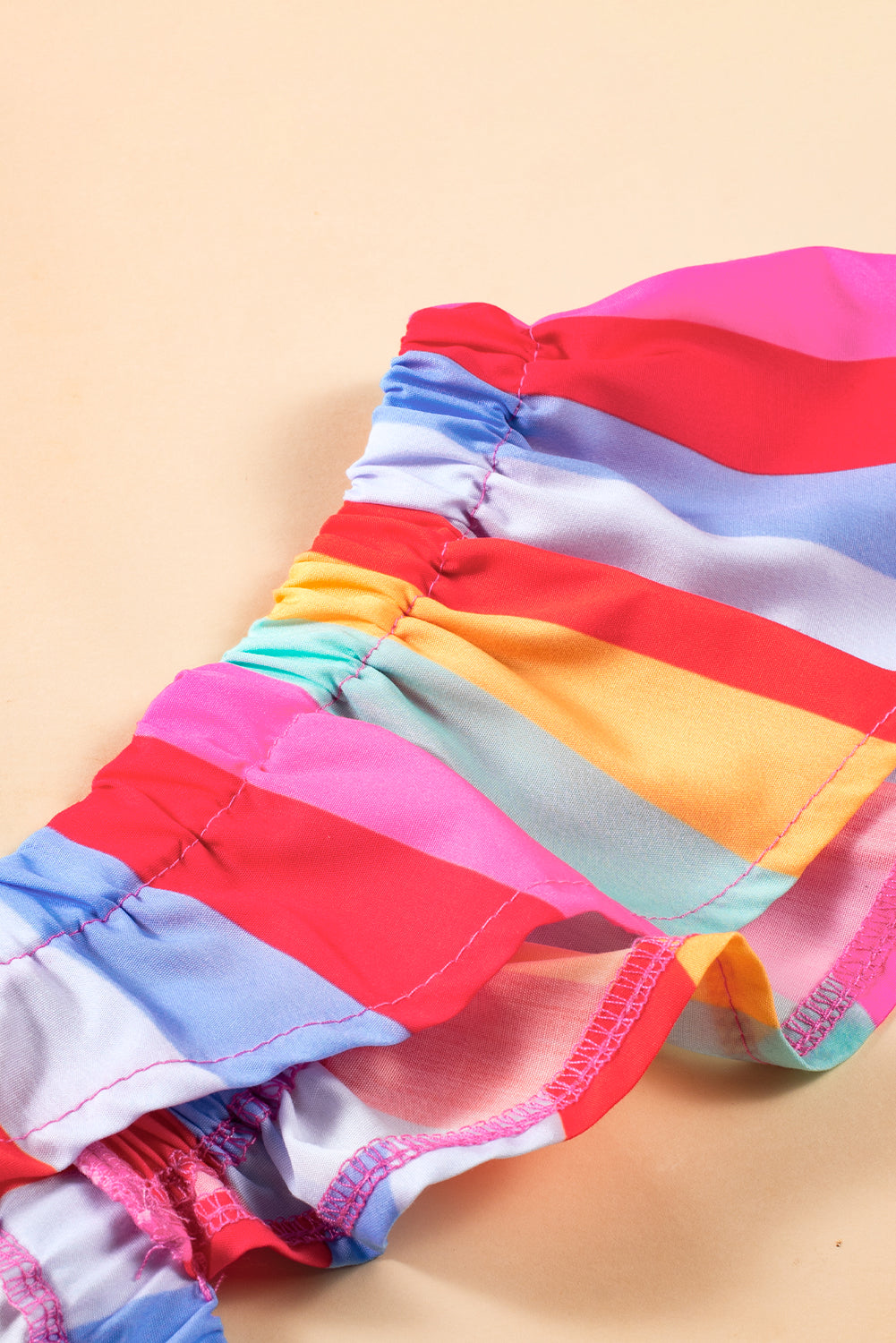 Red Stripe Ruffled Straps Babydoll Tank Top