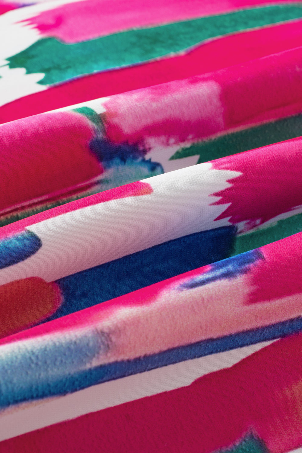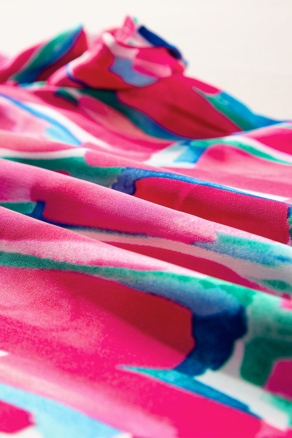 Rose Abstract Brush Print Ruffled Sleeve Frill V Neck Blouse