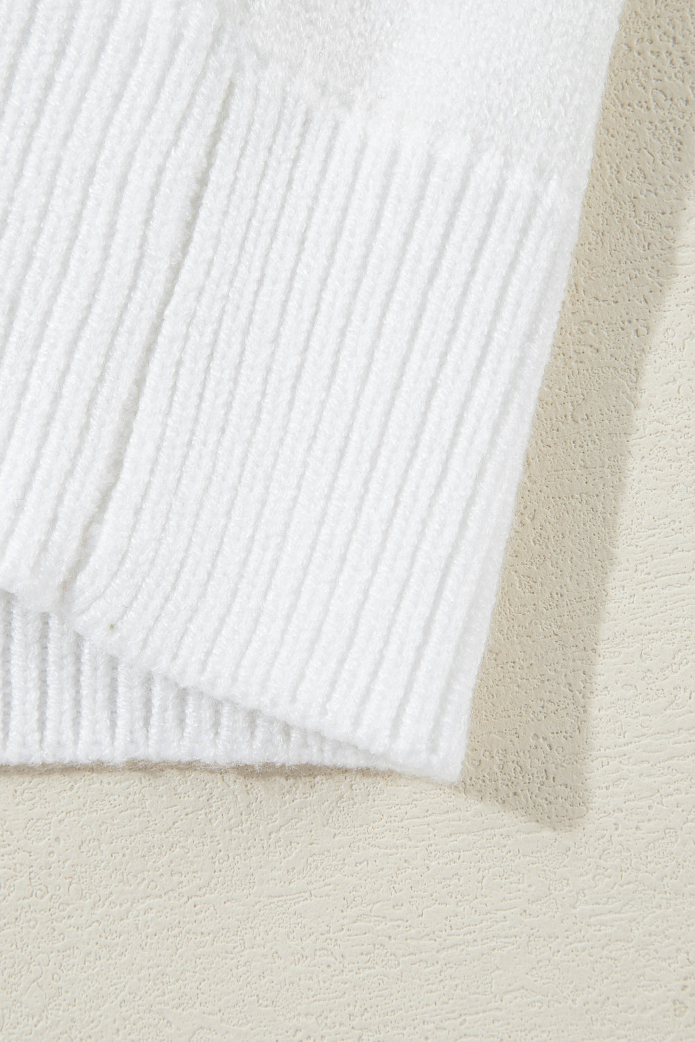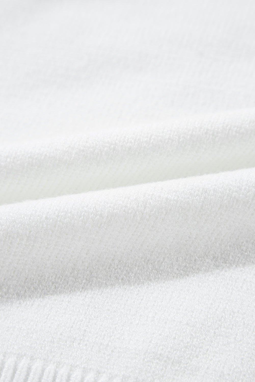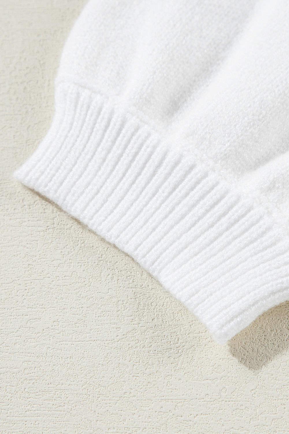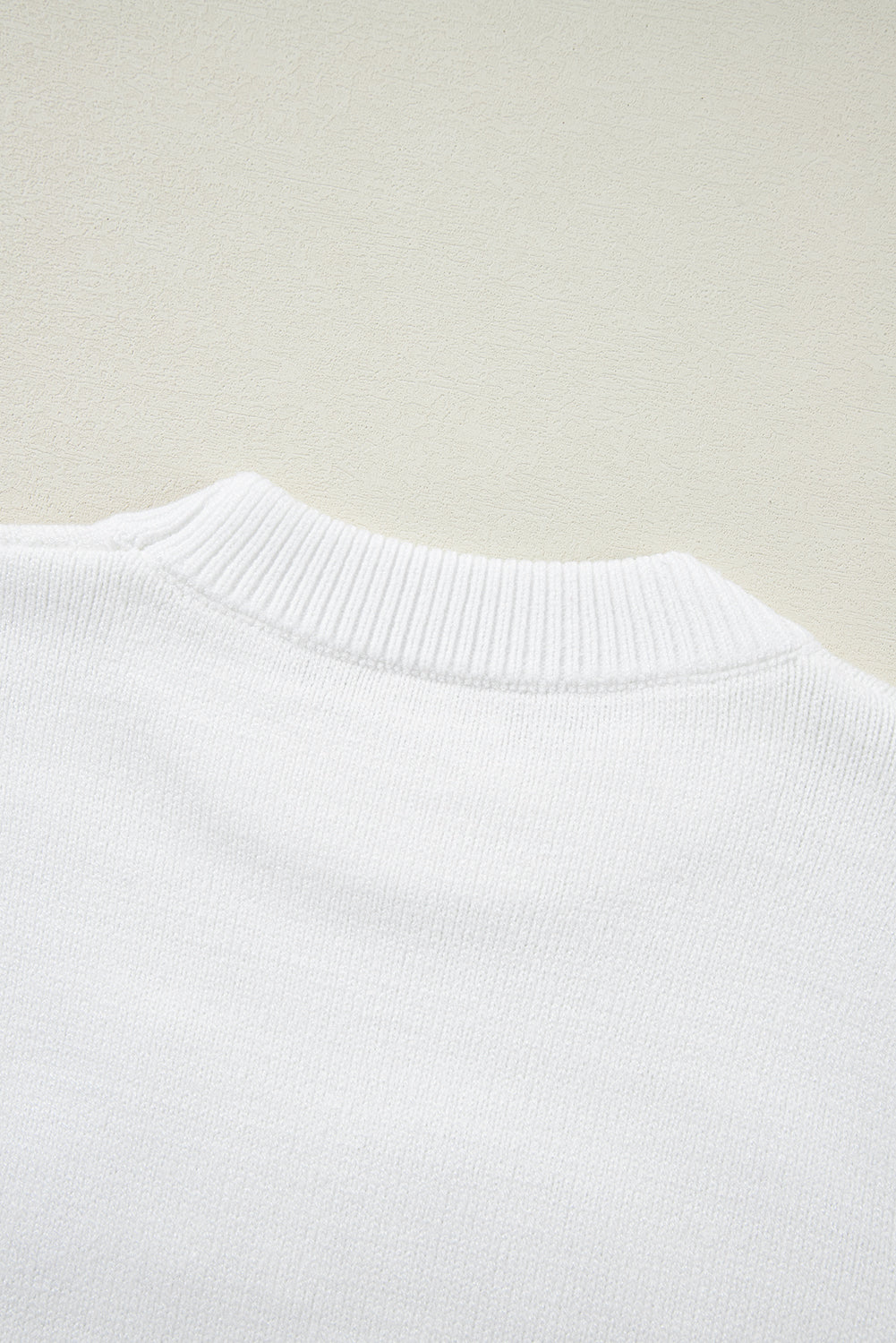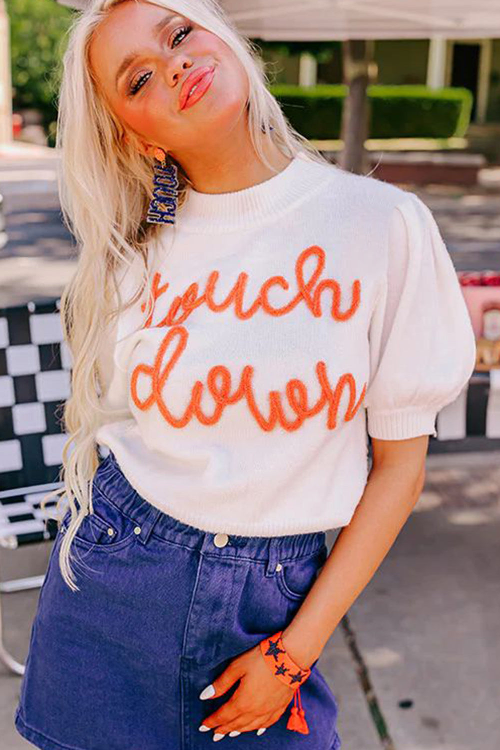 White Touchdown Tinsel Puff Short Sleeve Crew Neck Sweater