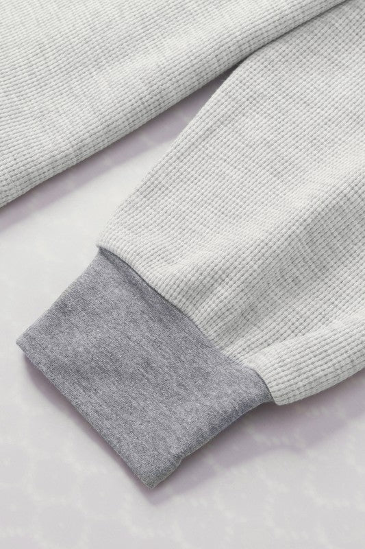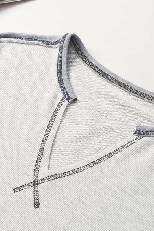 Women Seam Ribbed Patchwork V Neck Sweatshirt